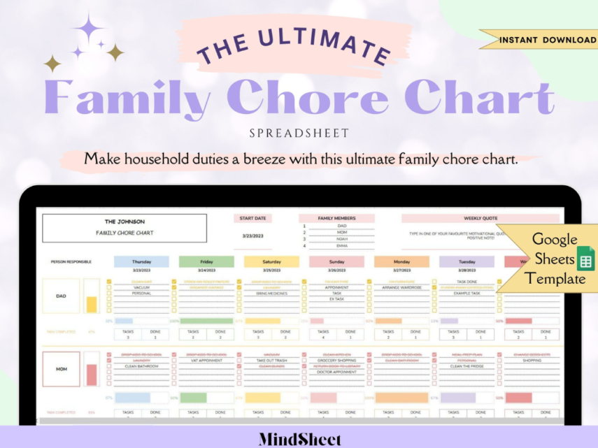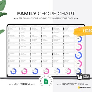 Family Chore Chart Google Sheets Spreadsheet Template Digital Chore