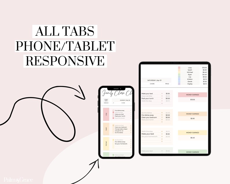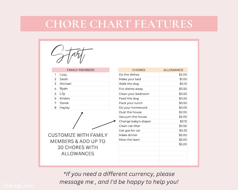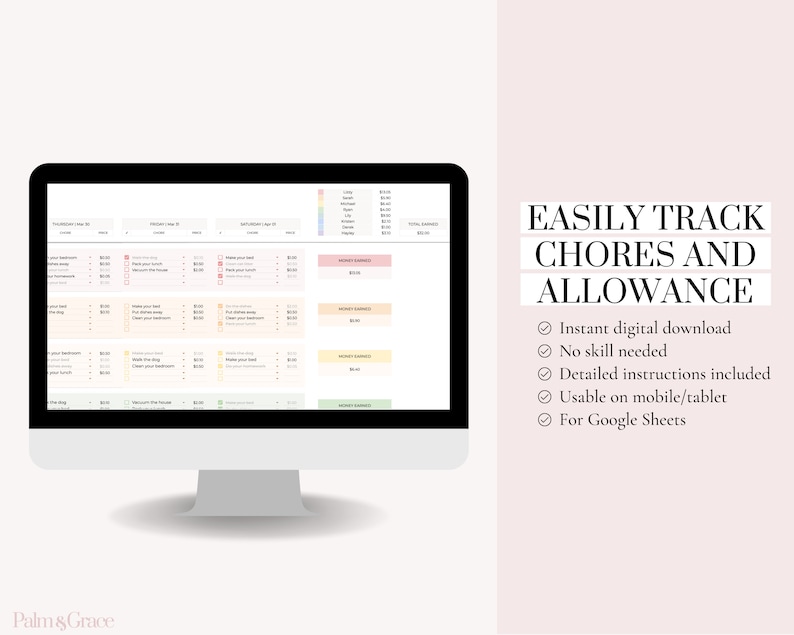 Google Sheets Family Chore Chart Template Allowance Tracker Digital