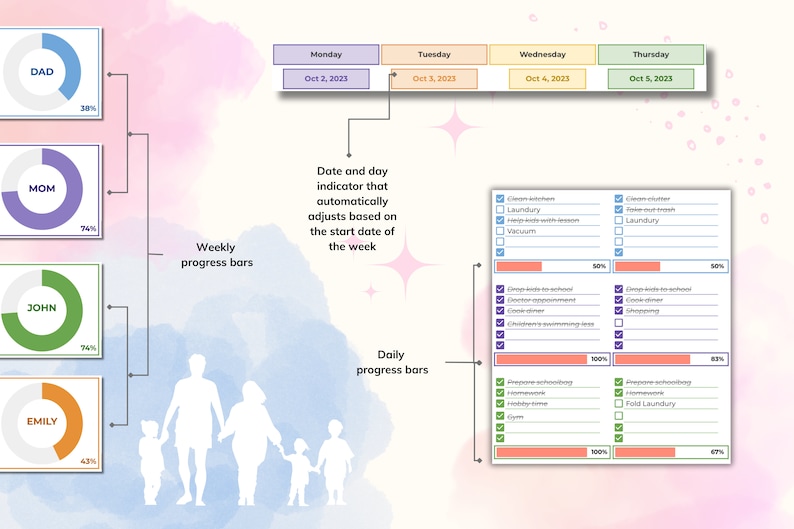 Family Chore Chart Google Sheets Template Personalized Editable Weekly
