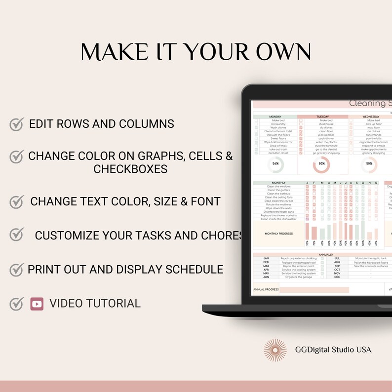 Family Chore Chart Spreadsheet for Google Sheets Cleaning Checklist