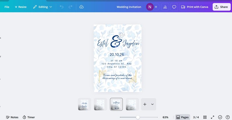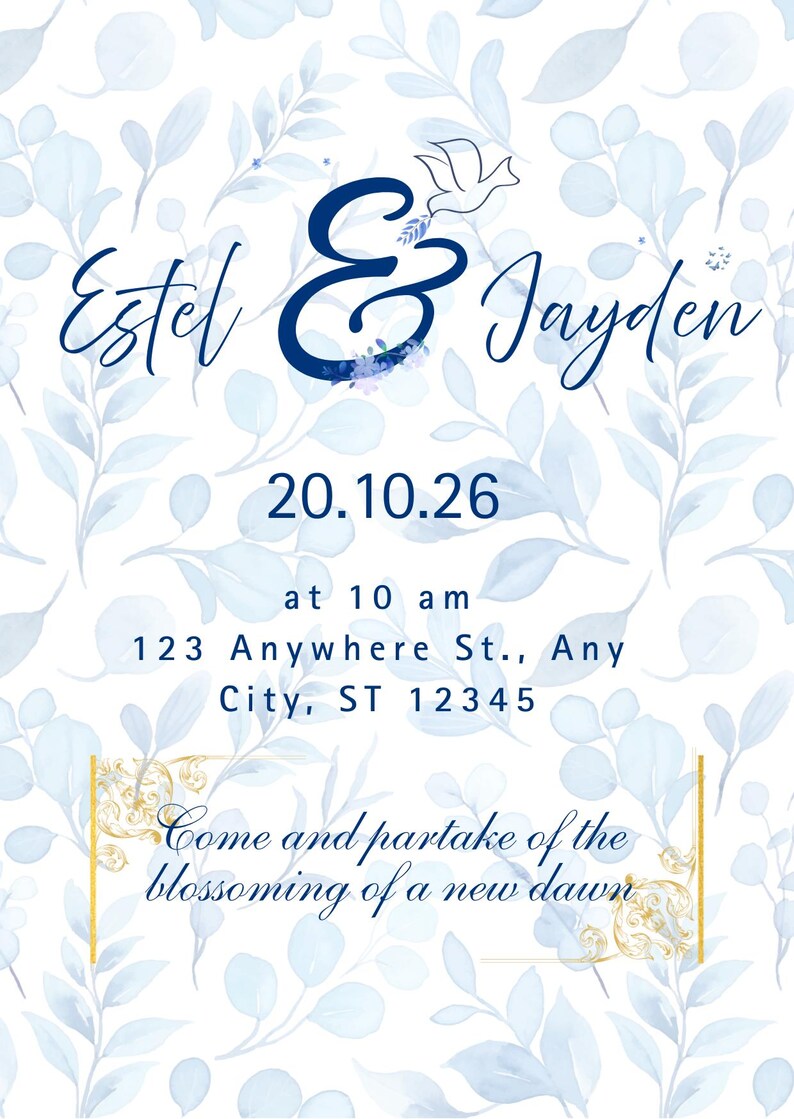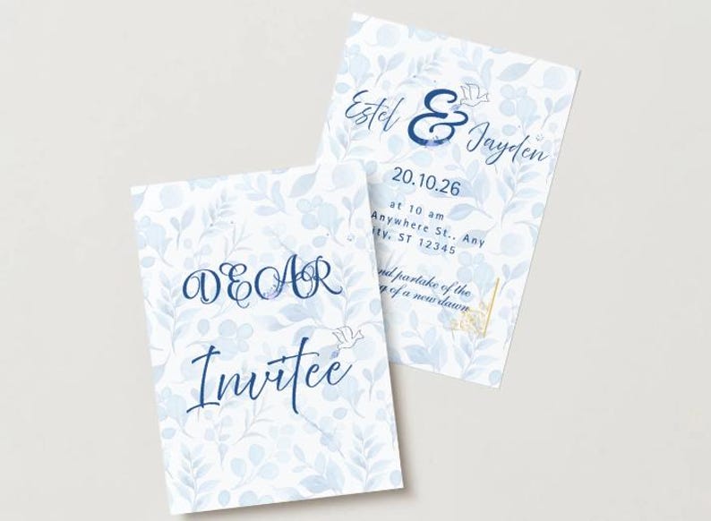 Christian Wedding Invitation Canva Template Editable Blue Wedding