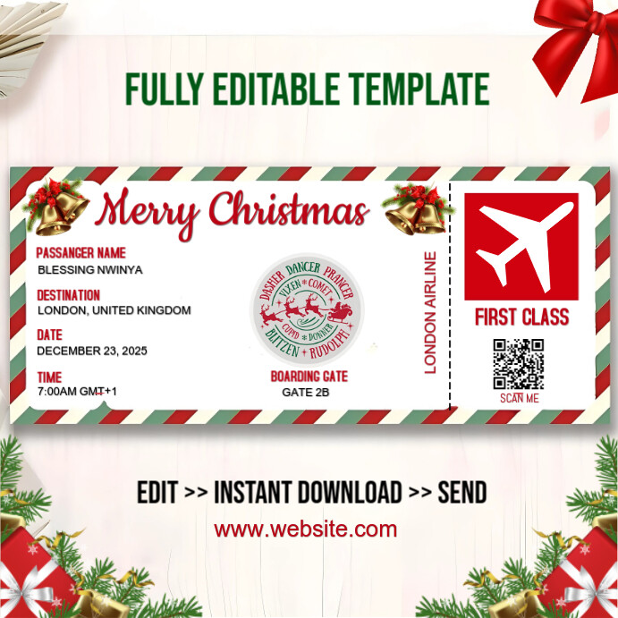 Editable Christmas Boarding Pass Template Printable Airline Etsy
