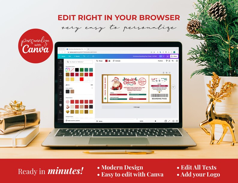 Christmas Boarding Pass Template Editable Christmas Plane Etsy Canada