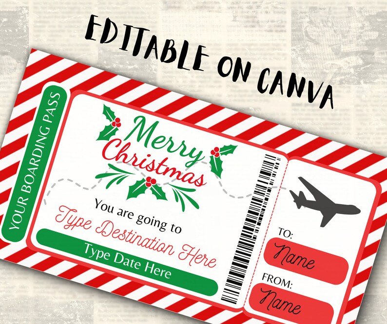 Christmas Boarding Pass Template Surprise Trip Editable Etsy