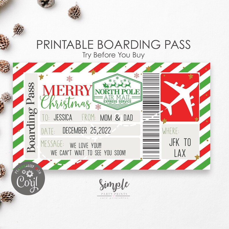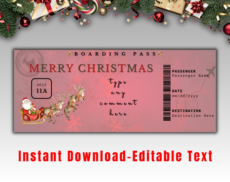 Christmas Boarding Pass Template Editable Holiday Gift Etsy