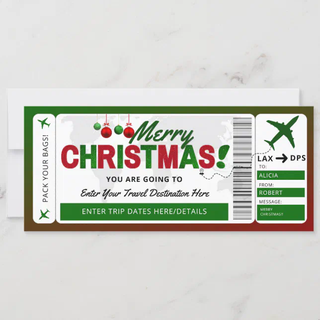 Christmas Boarding Pass Template Surprise Trip Zazzle