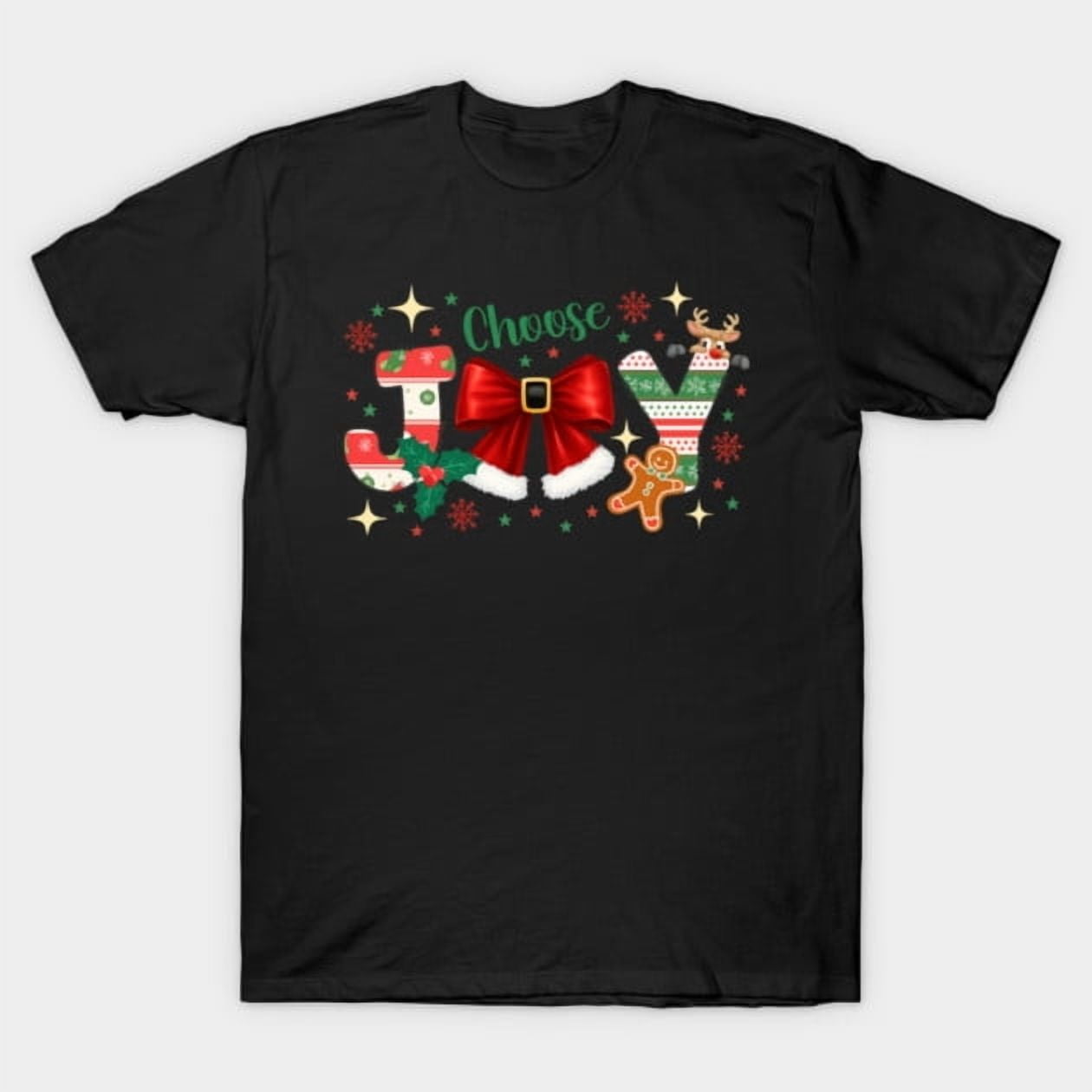 Choose Joy Christmas Design with Red Bow Gingerbread Reindeer Artwork