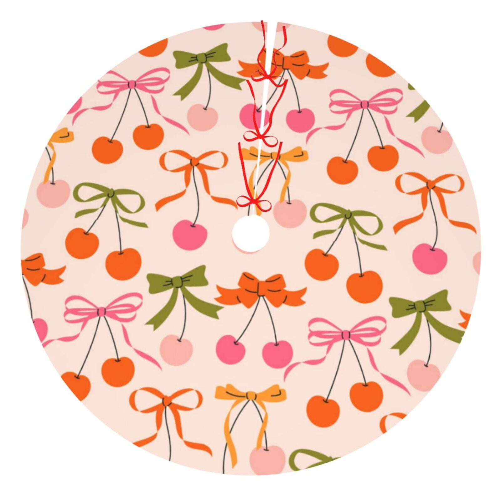 Qekee Cherries And Bows Print Christmas Tree Skirt Red Tree Skirt