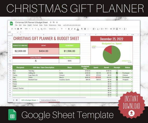 Christmas Gift Planner Budget Template Google Sheets Etsy