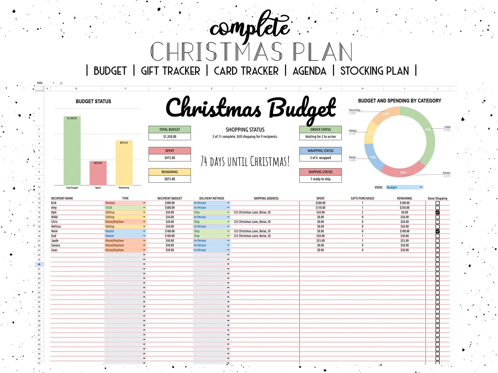 Christmas Spending Tracker Budget Template for Xmas Holiday Easy