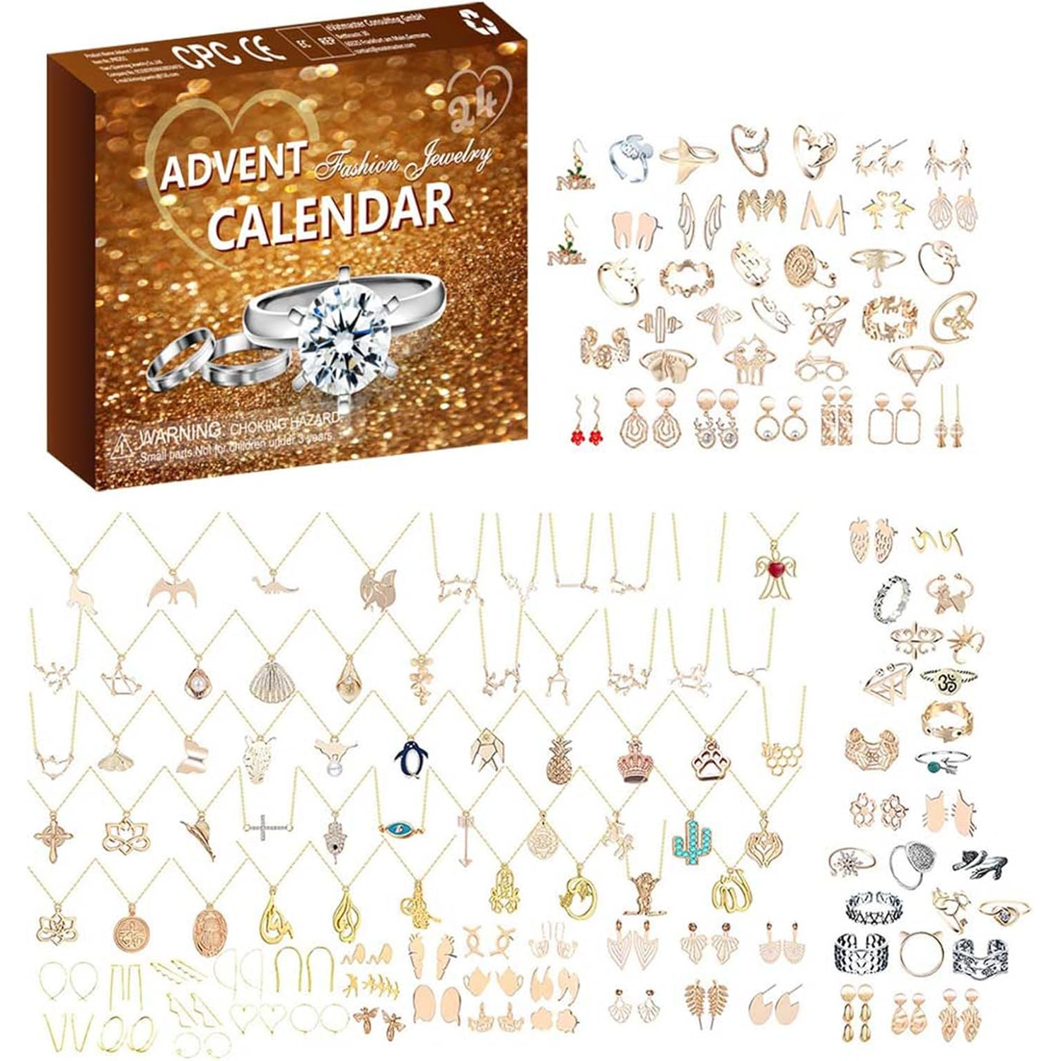 Advent Calendar Jewellery Christmas Countdown 2024 Gold Jewelry Set