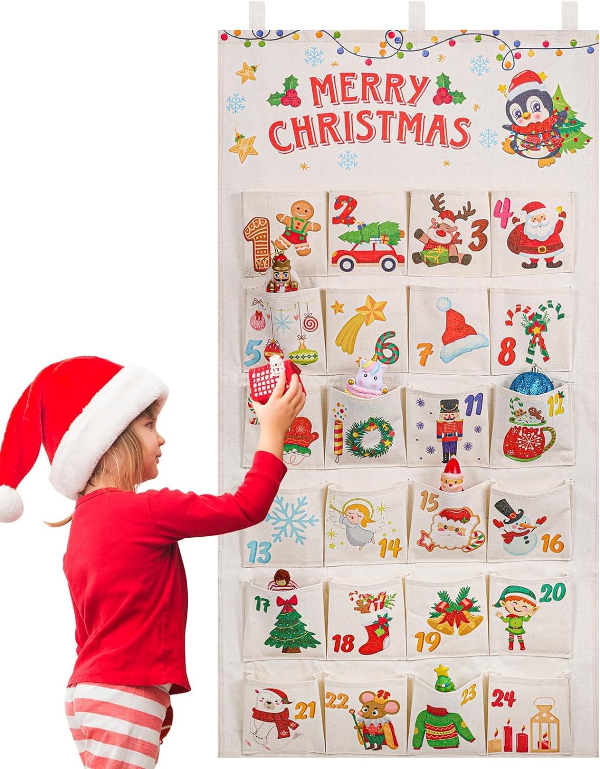 Christmas Advent Calendar with 24 Pockets Reusable Fabric Wall Hanging