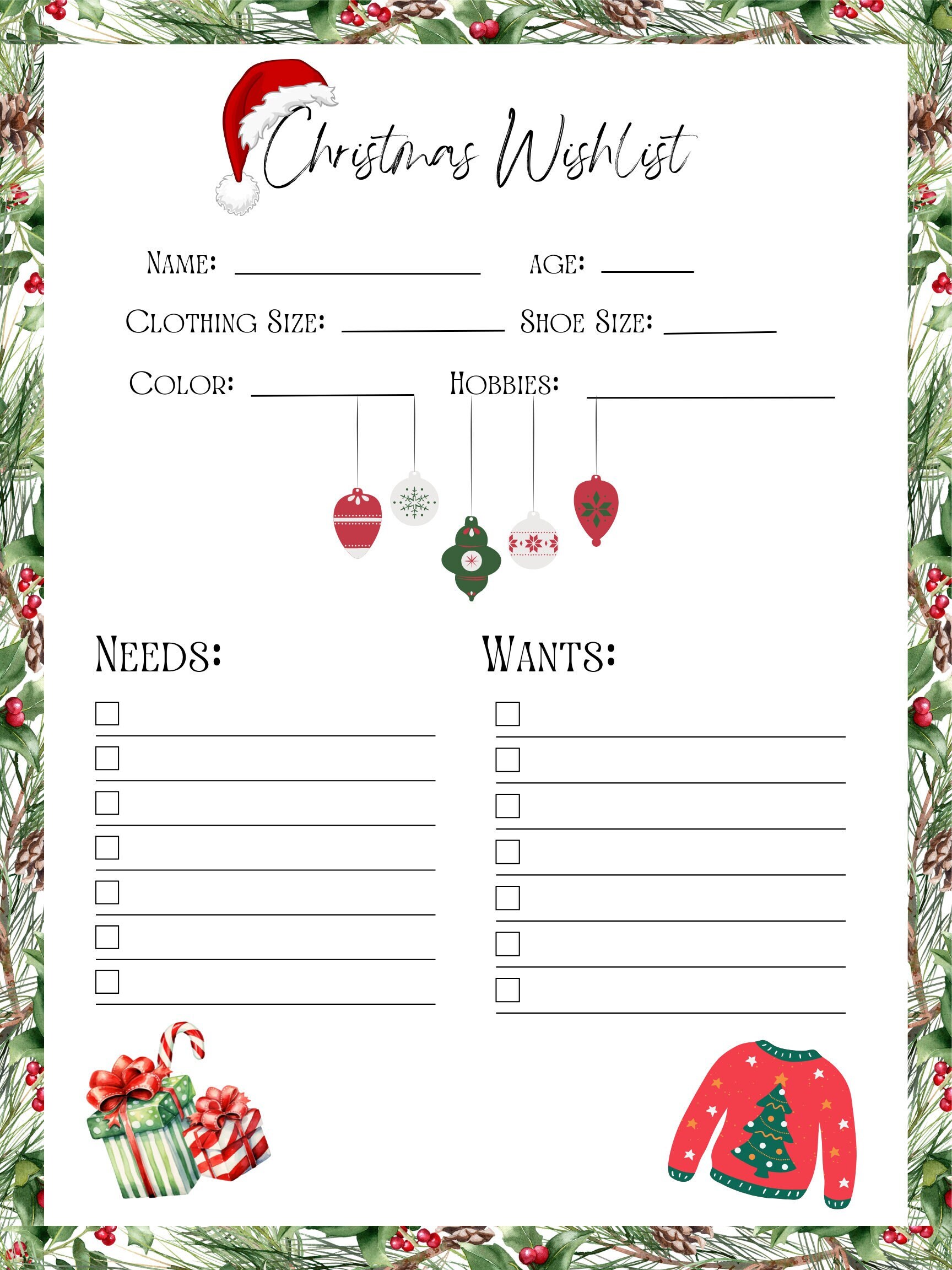Christmas List Printables (PDF)Wish list Made By Teachers