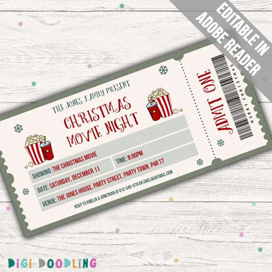 Christmas Movie Night Gift Ticket Template Printed Smile Shop