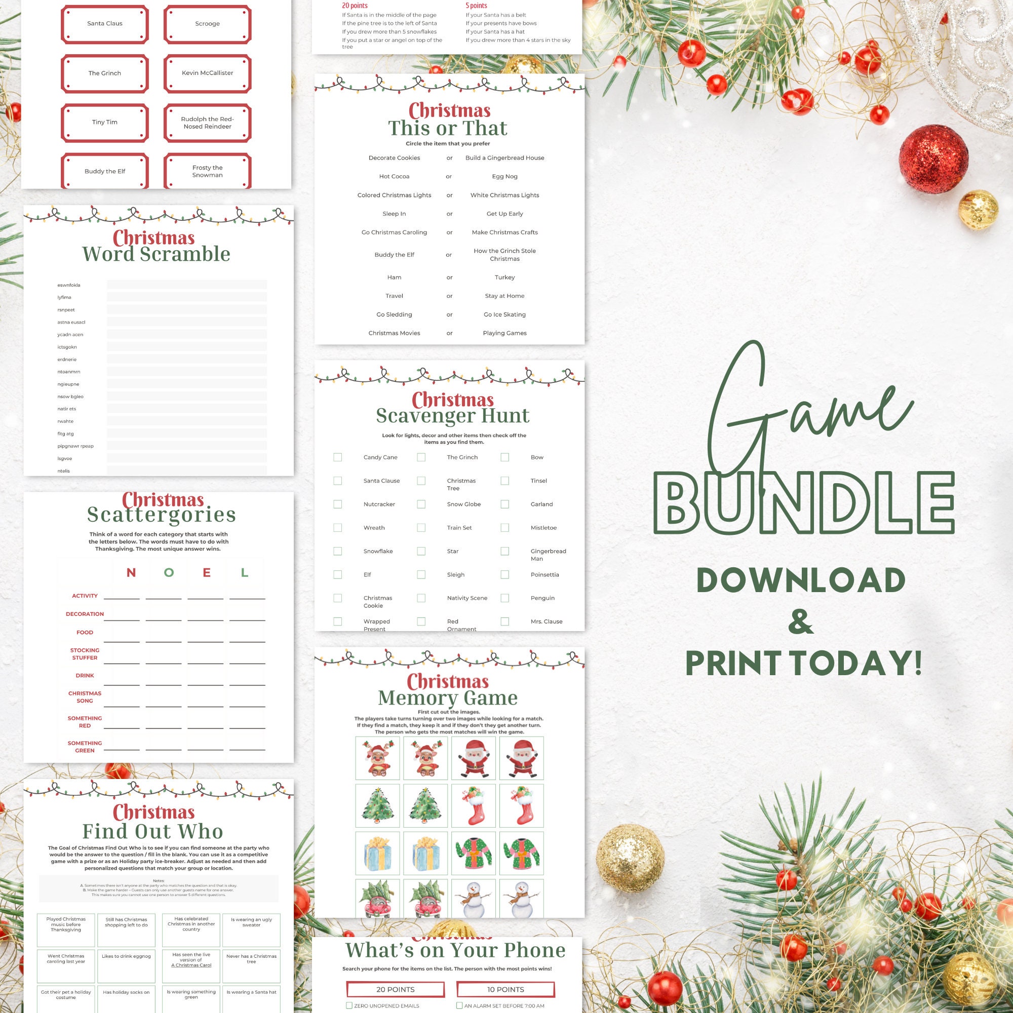 Christmas Party Games Printable Bundle Digital Download for Holiday