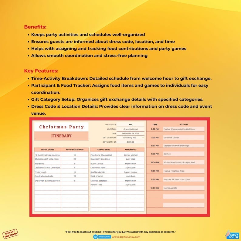 Christmas Party Itinerary Template in Excel Google Sheets Download
