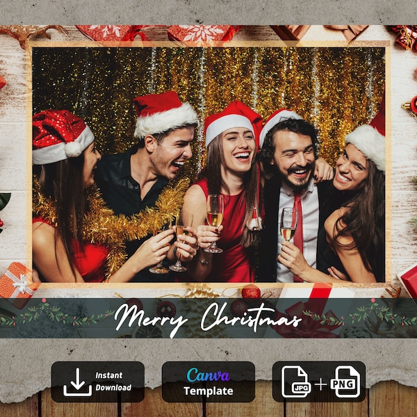 Christmas Photo Booth Template 4x6 Editable PSD Overlay New Year