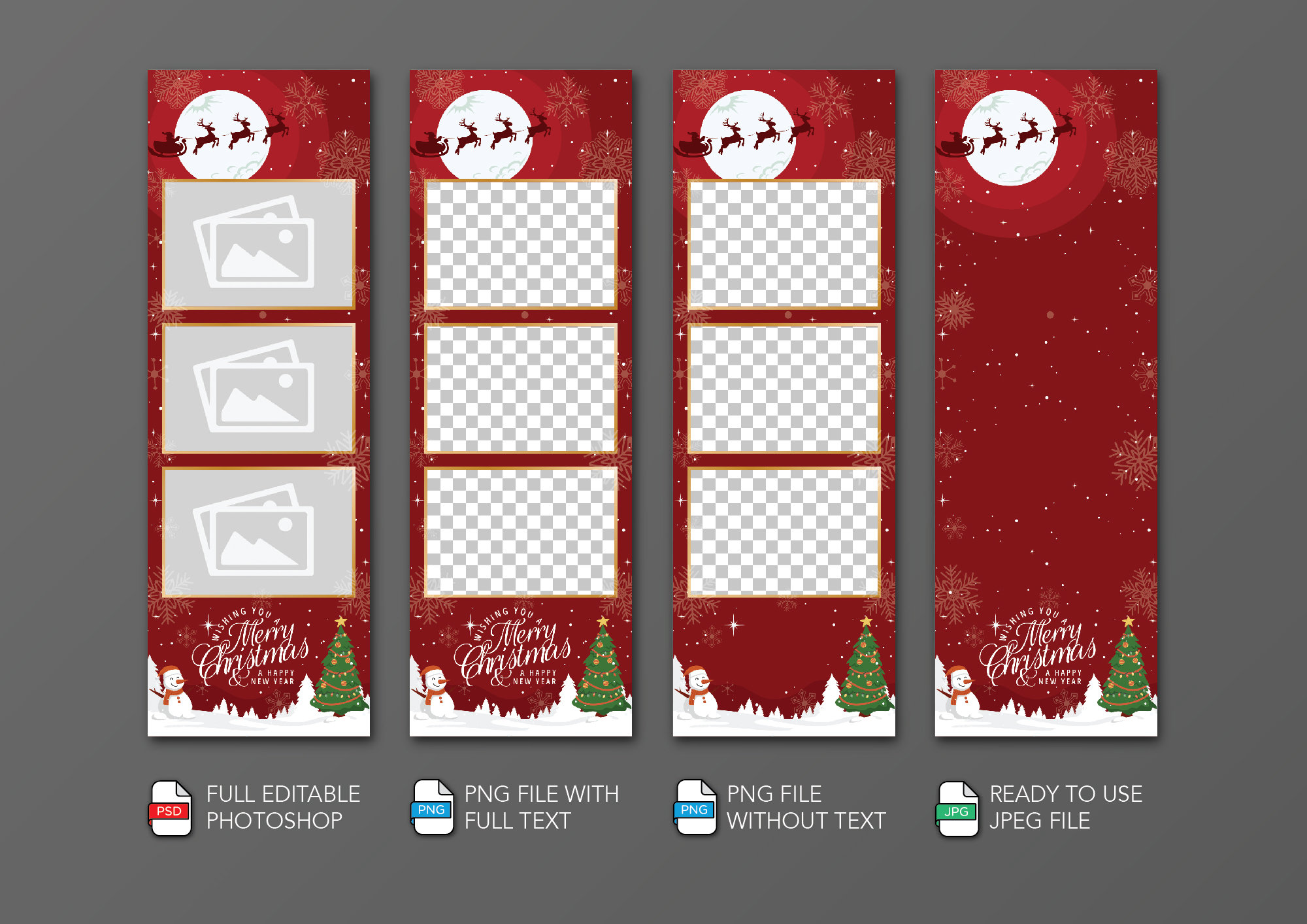 Christmas Photobooth Template Merry Christmas and New Year Strip Winter