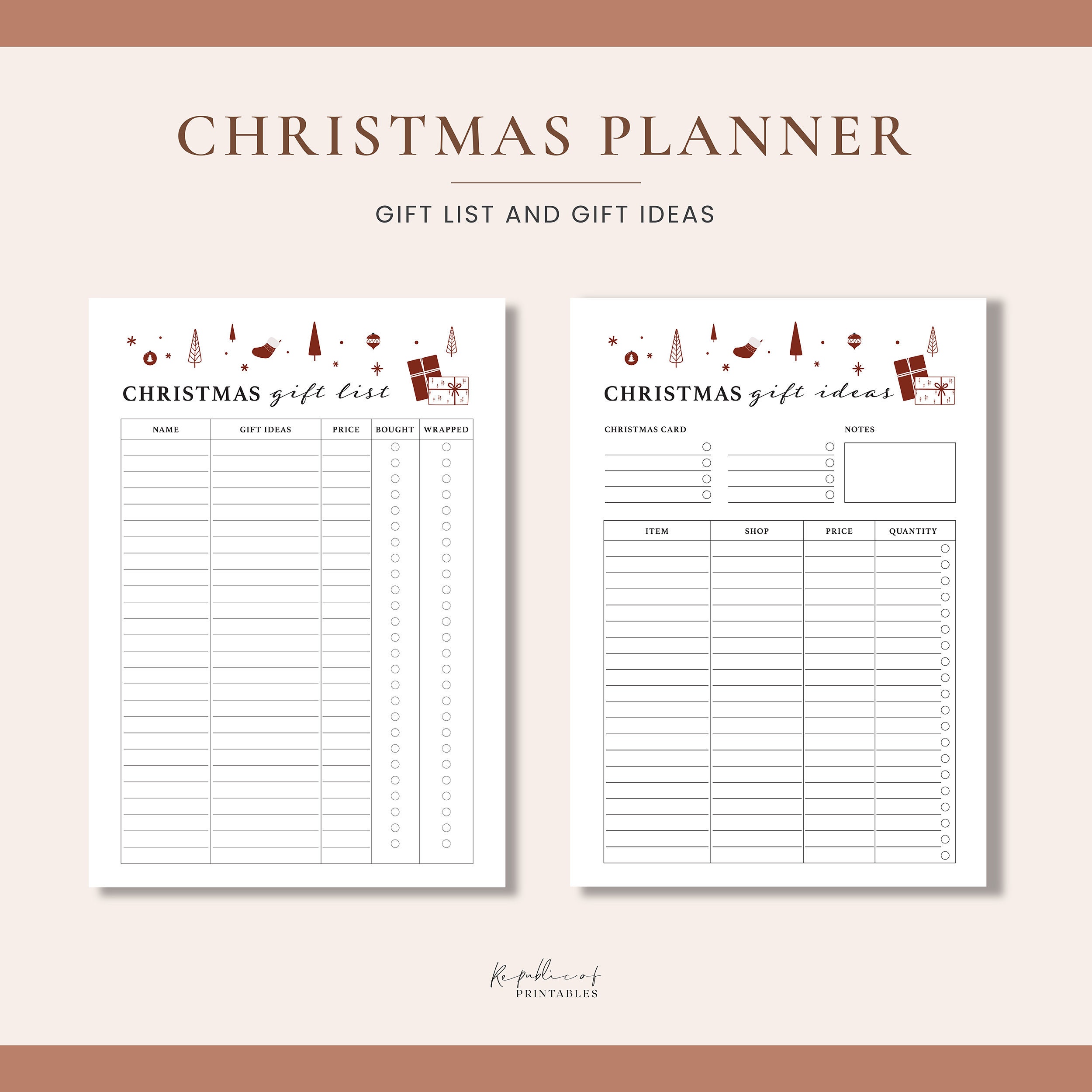 Christmas Planner Printable Printable Christmas Gift Planner Etsy