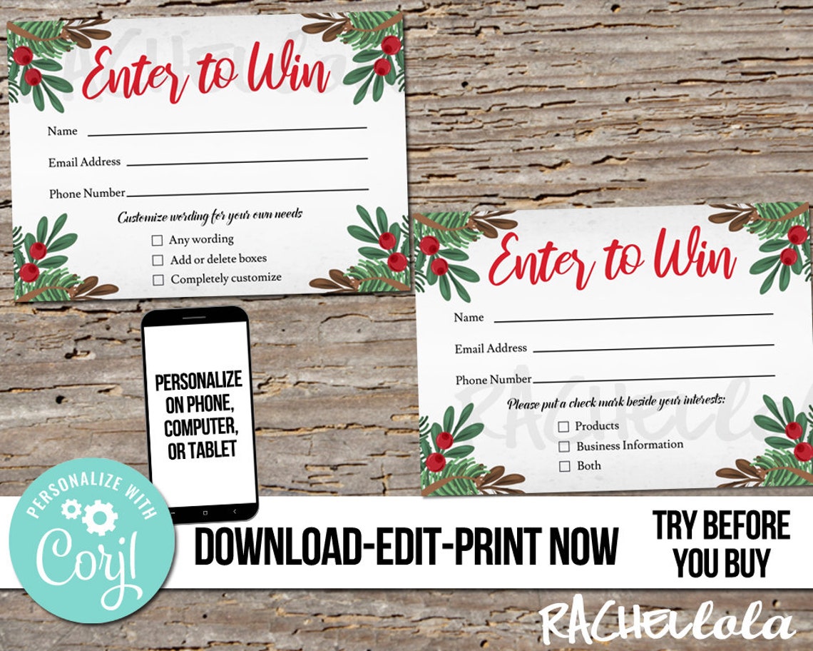 Christmas Raffle Ticket Template Printable Enter to Win Etsy