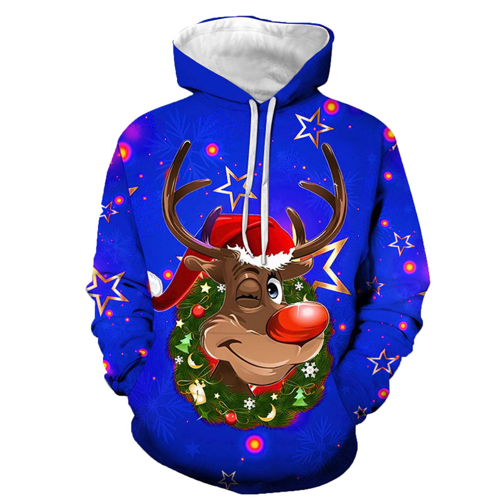 Hoodies for Men Christmas 3D Cartoon Reindeer Print Long Sleeve Casual