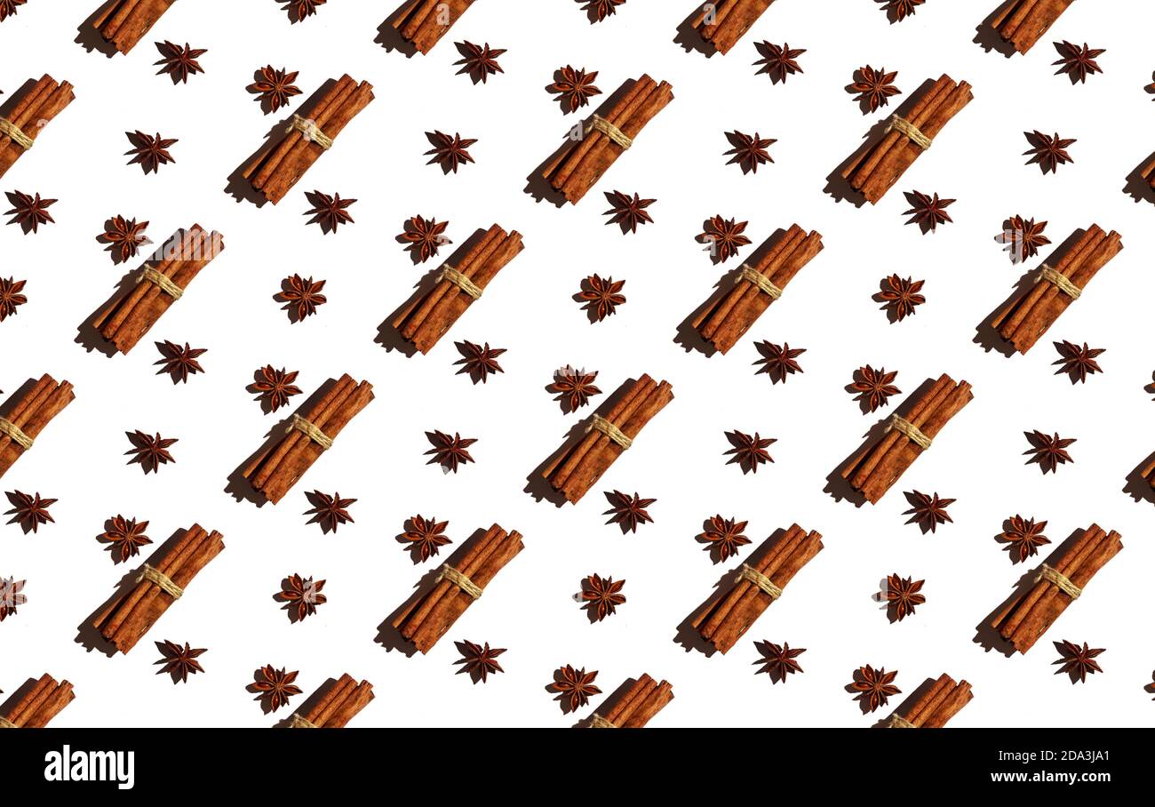 Christmas seamless pattern of cinnamon sticks and star anise Stock