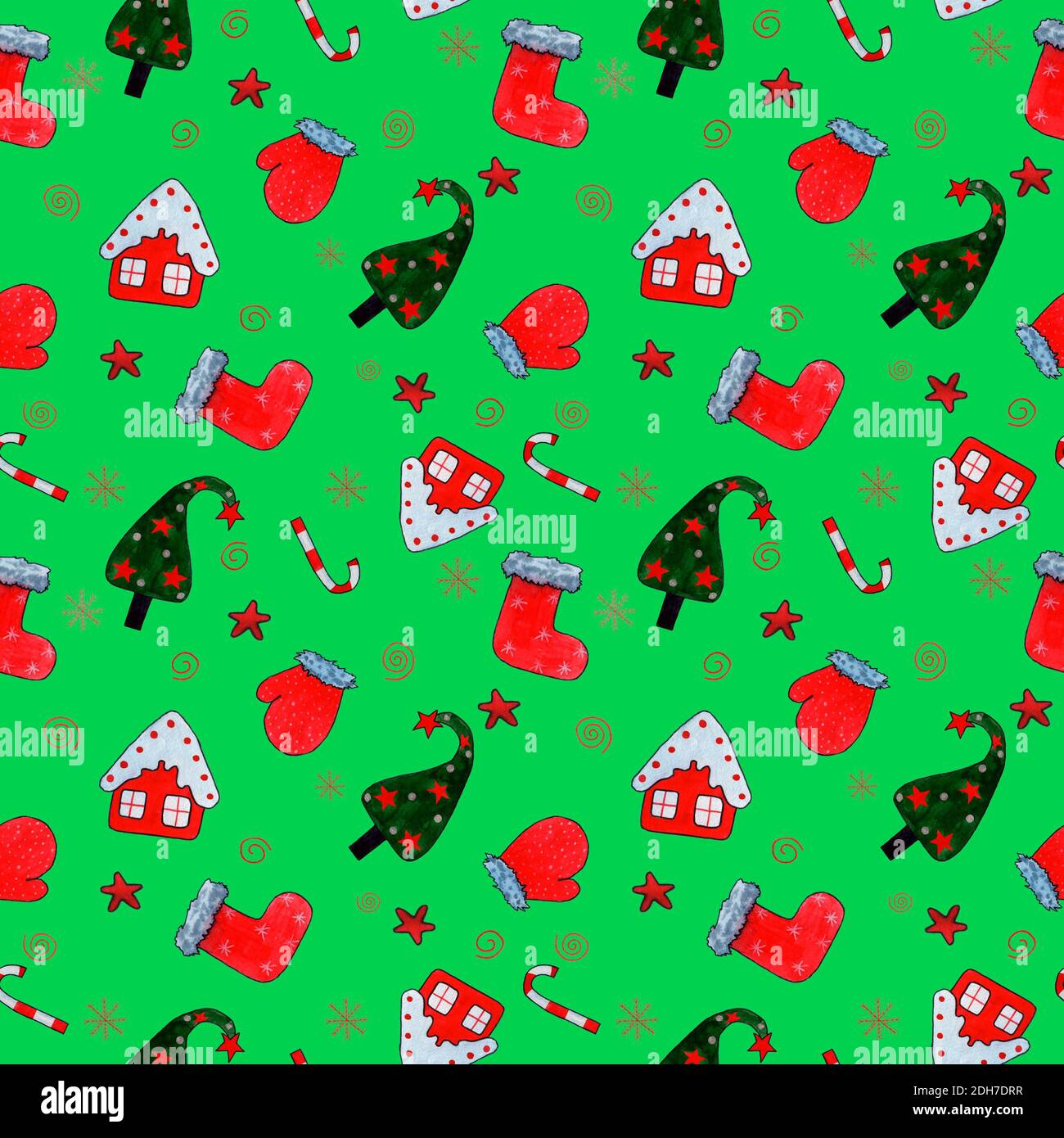 New Year #39 s pattern watercolor red mitten Christmas boot Christmas