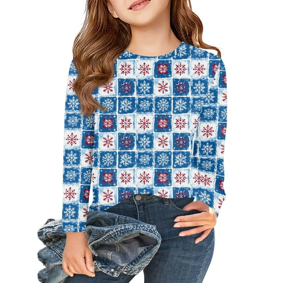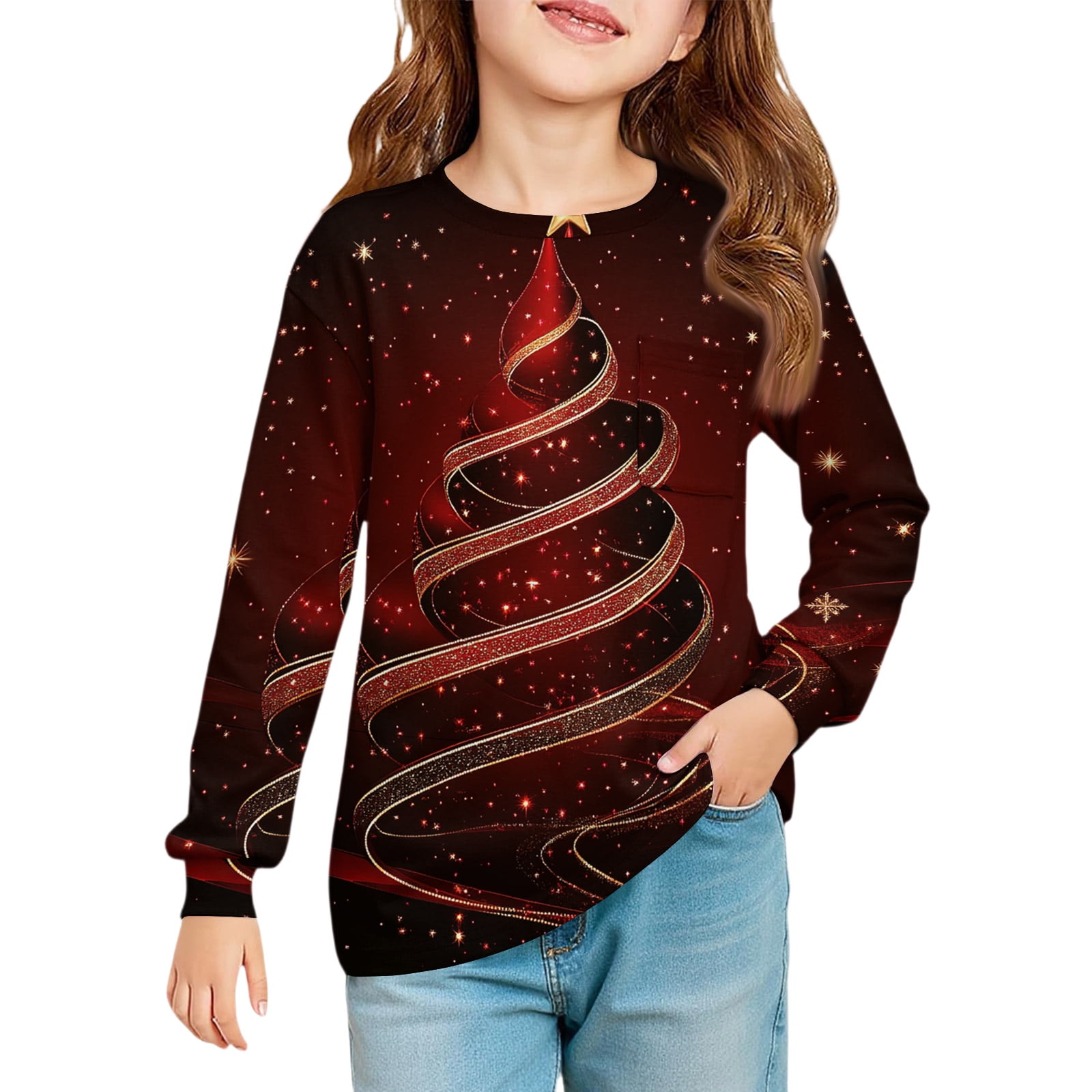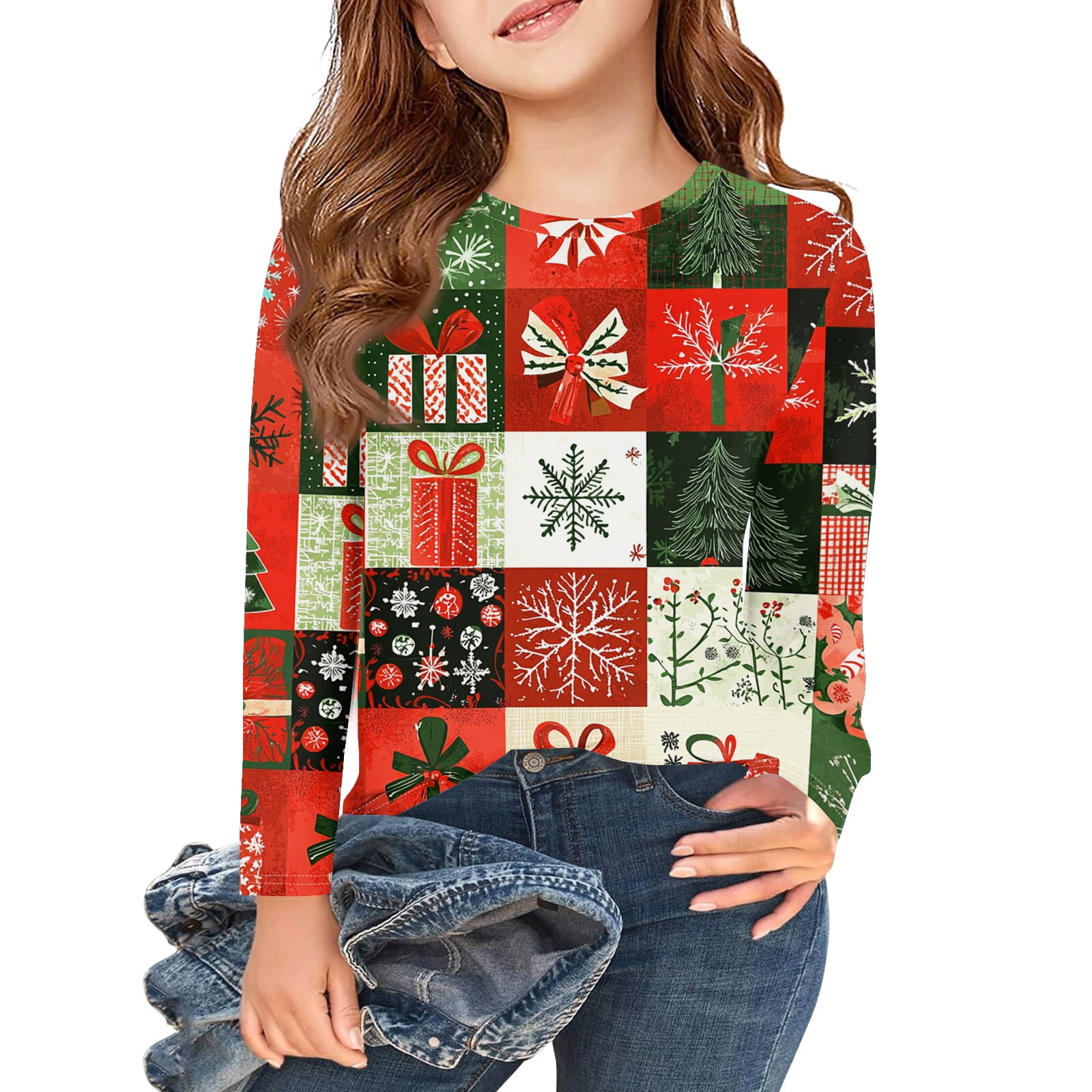 ASDFVBKG Girls #39 Christmas Tops Christmas Tree Print fall Tops xmas Cute