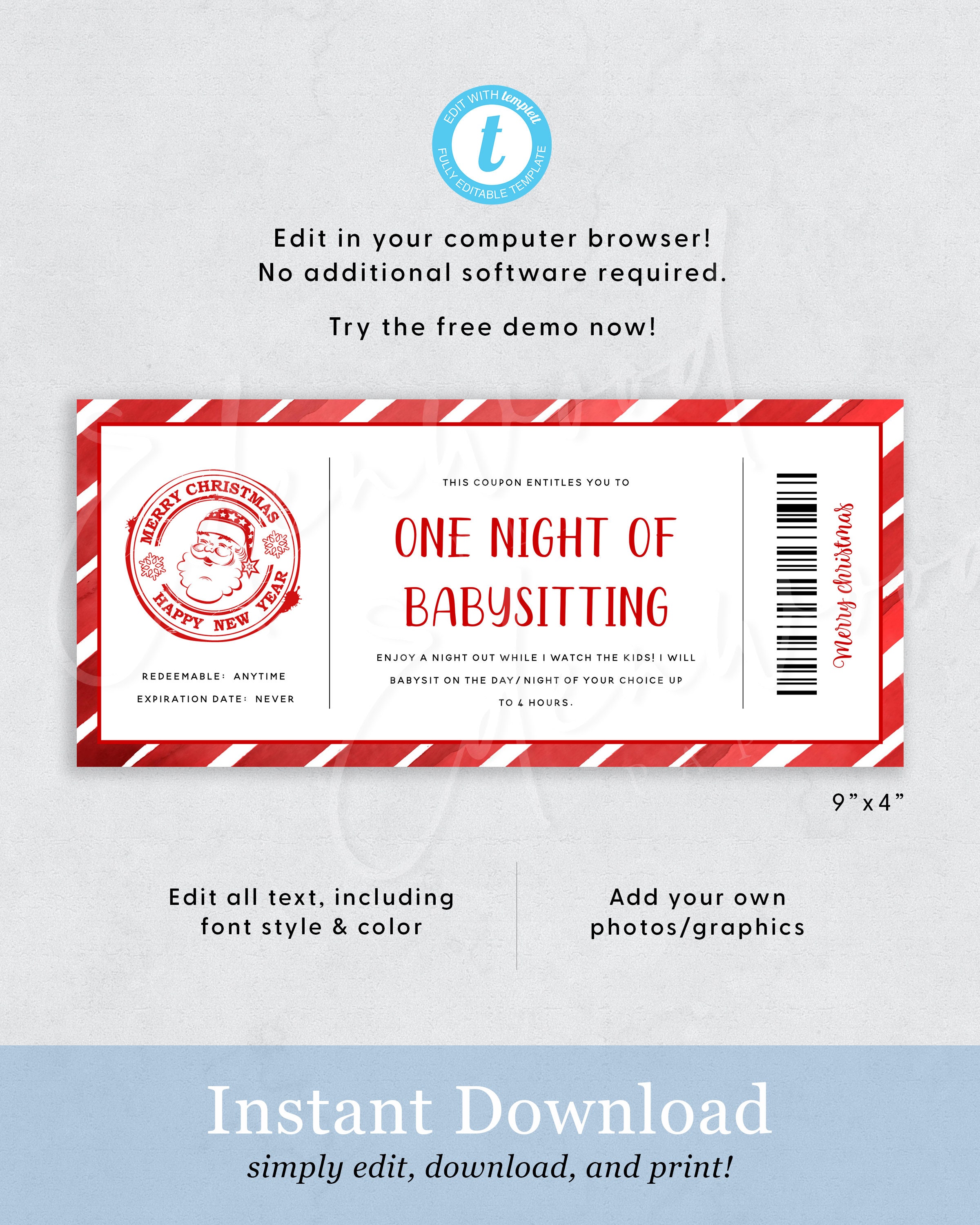 Printable Christmas Coupon Christmas Printable Gift Holiday Christmas