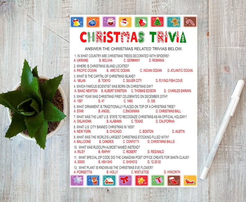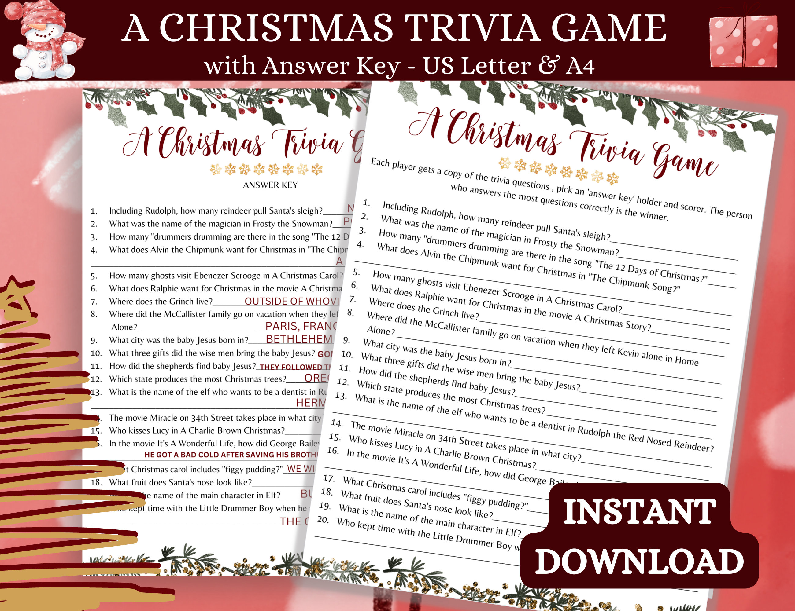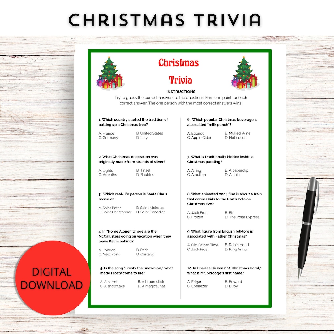 Christmas Trivia Game Printable Christmas Fun Instant Etsy