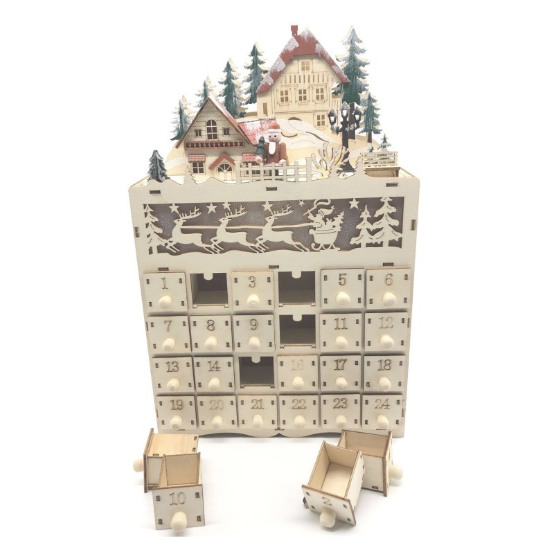 PE Christmas Wooden Advent Calendar with 24 drawers and LED Lights