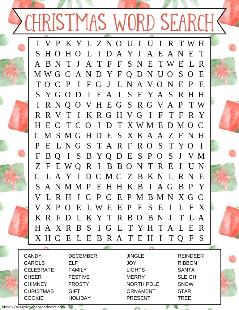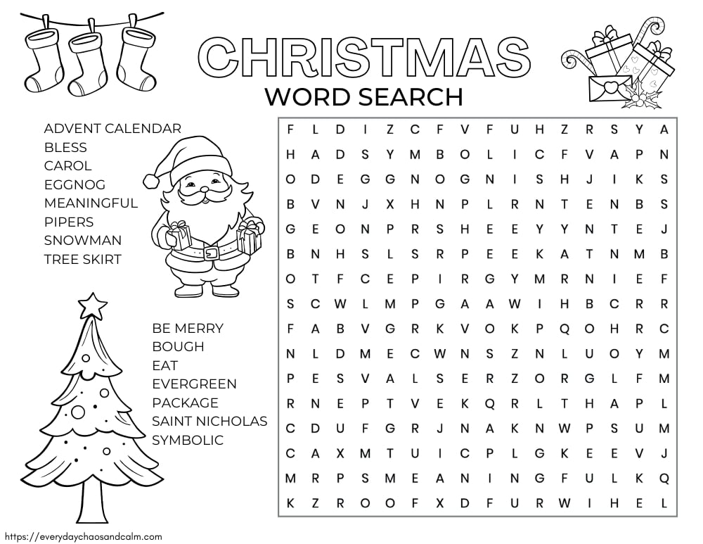 Merry Christmas Word Search Puzzle Winter Printable Activities