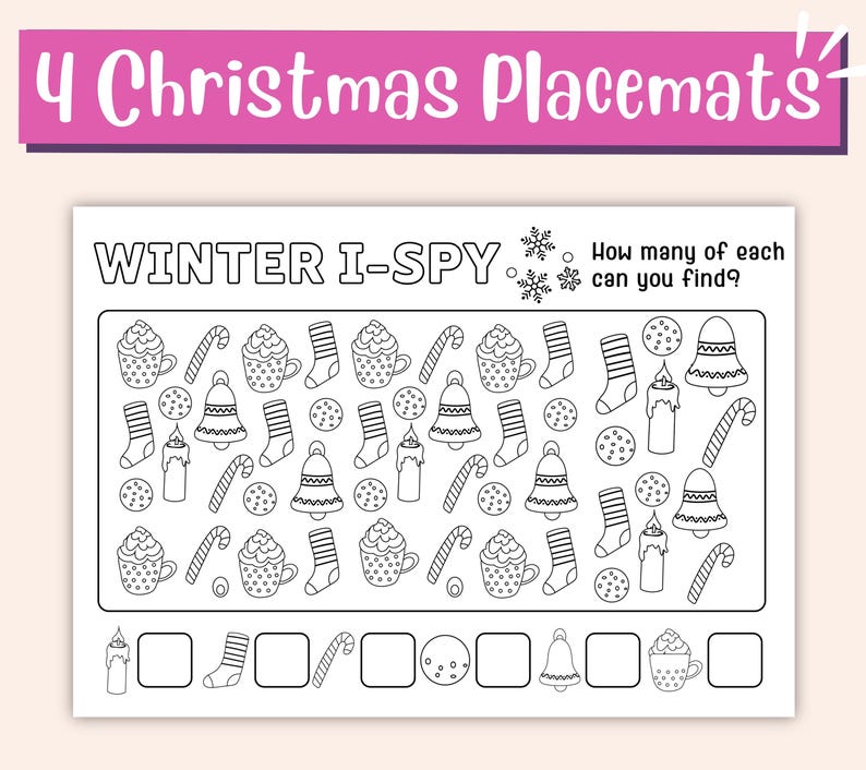 Christmas Placemats for Kids Printable Holiday I Spy Word Search