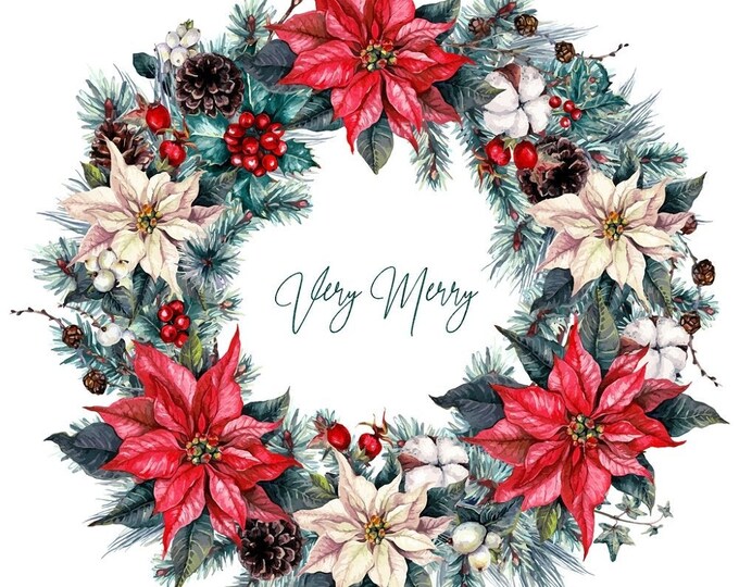 Christmas Wreath Cotton Fabric Panel holiday Flourish Peggy Etsy