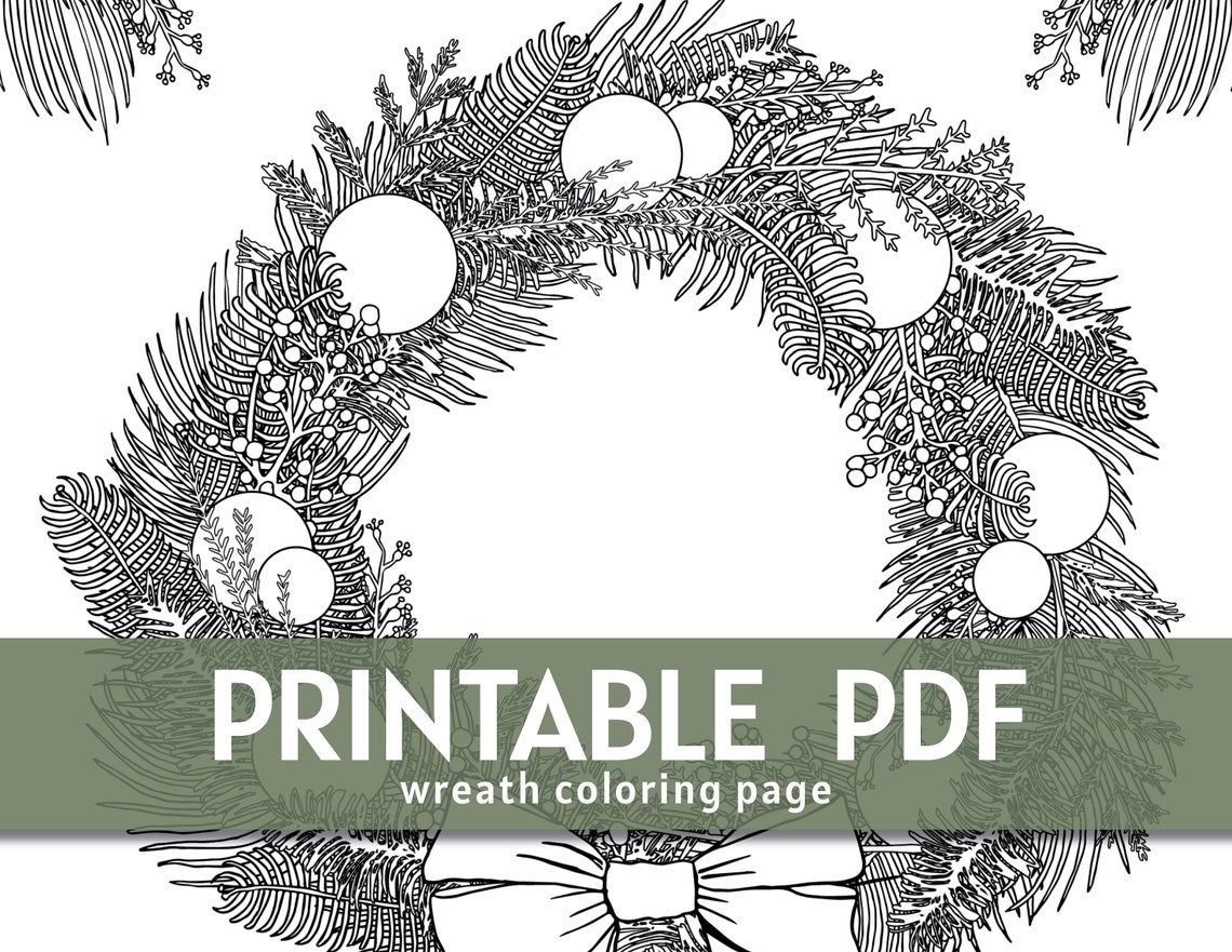 Christmas Wreath Coloring Page Printable PDF Etsy