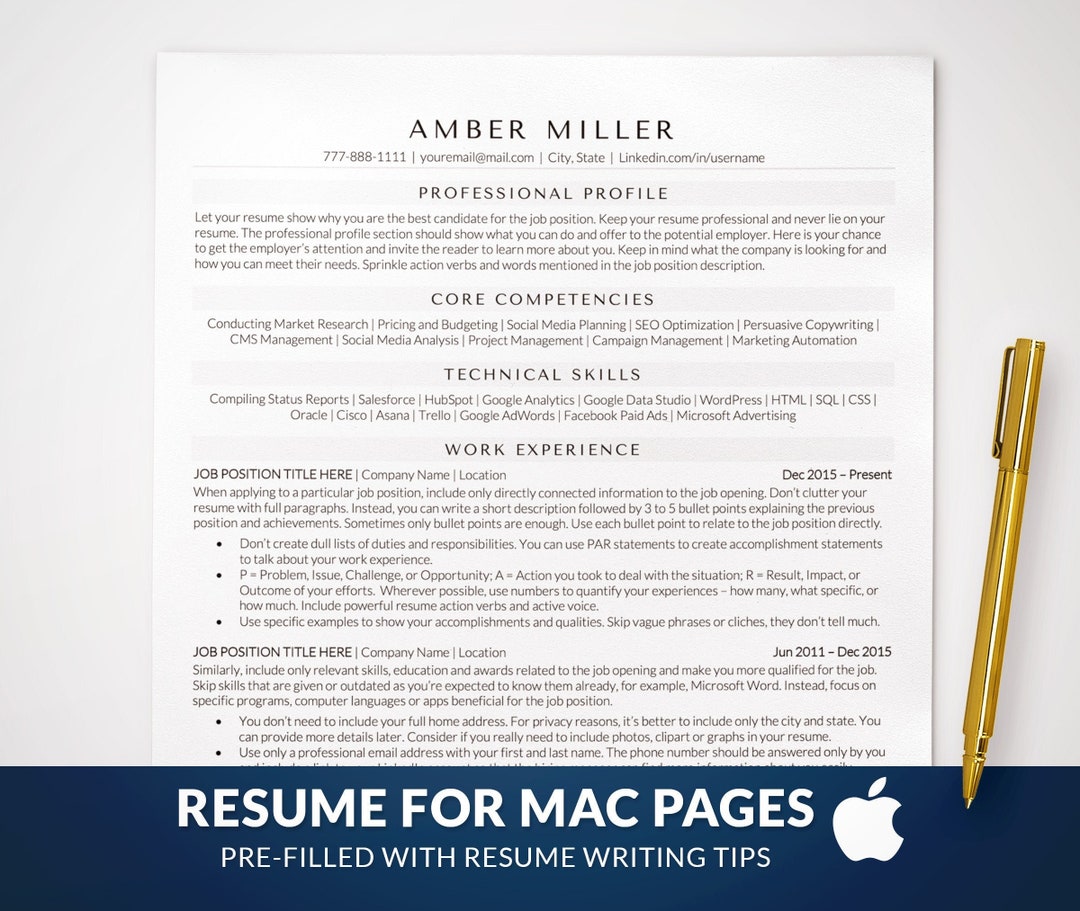 Traditional Chronological Resume Template for Mac Pages MS Word
