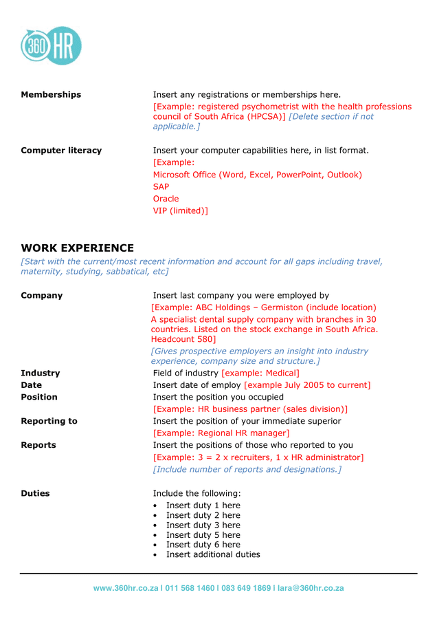 Chronological resume template in Word and Pdf formats page 2 of 2