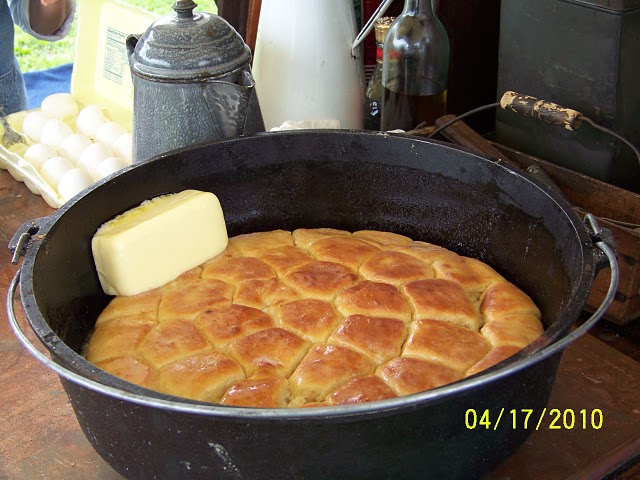 CHUCK WAGON MEAL OF BUFFALO STEW BEANS HOECAKES SOURDOUGH BREAD