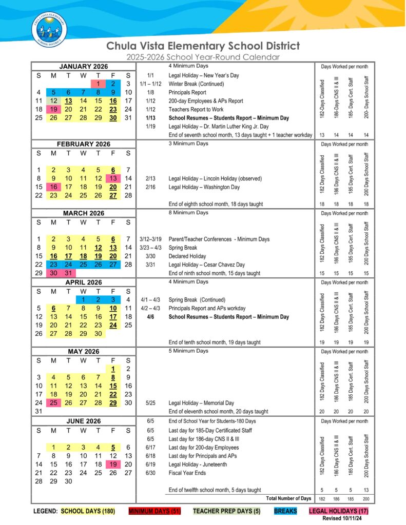Chula Vista School Calendar 25 26 Shelia L Taylor