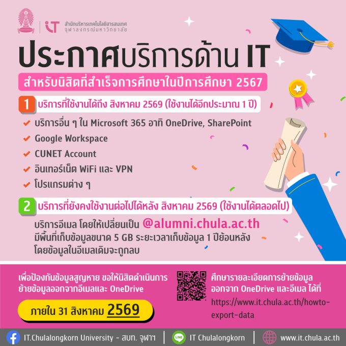 ประกาศบริการด้าน IT สำหรับนิสิตที่สำเร็จการศึกษาในปีการศึกษา 2567 IT