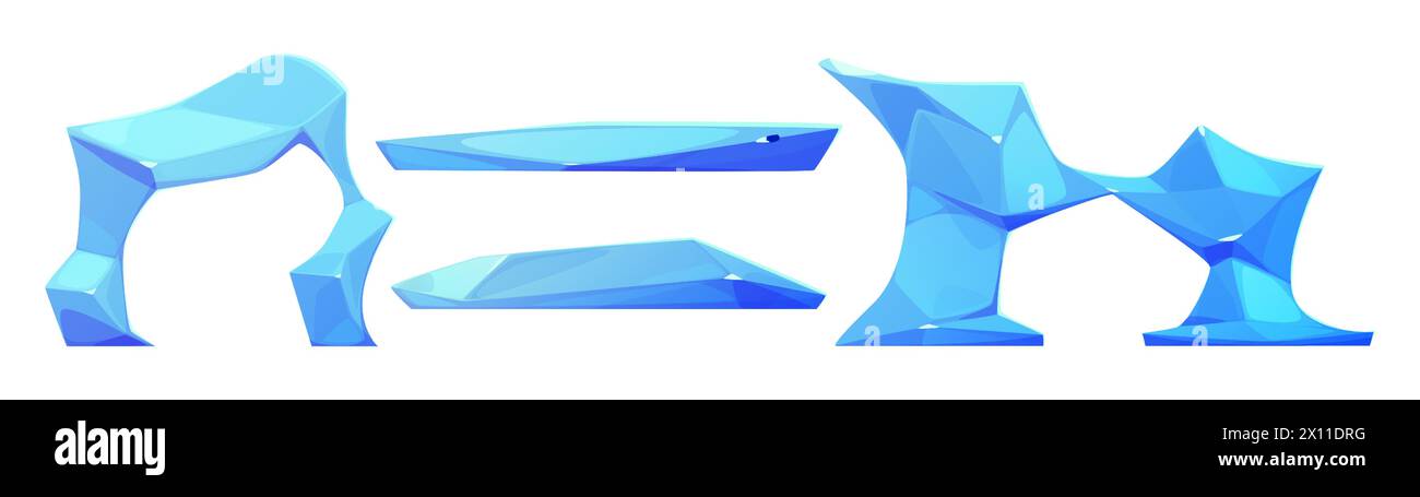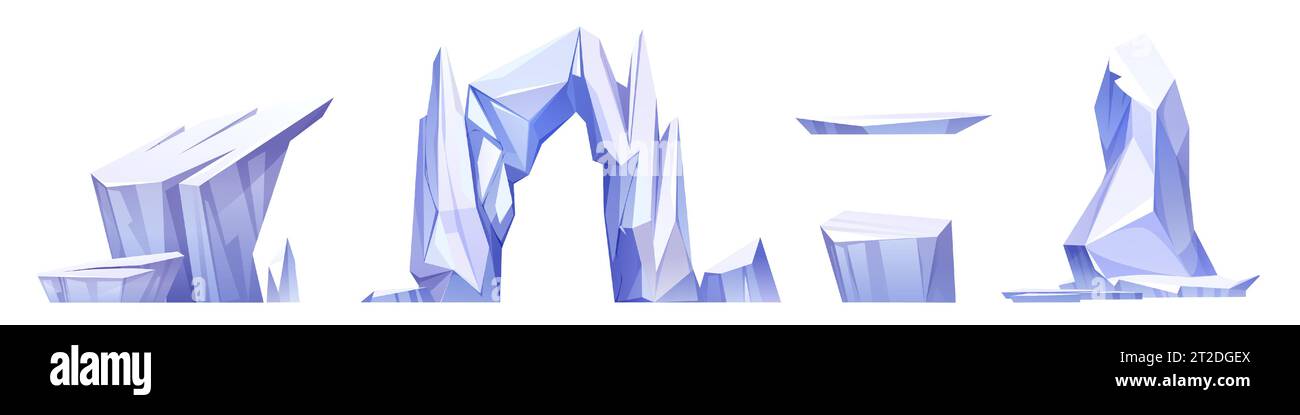 Glacier iceberg and snow rock arctic mountain cartoon vector piece set