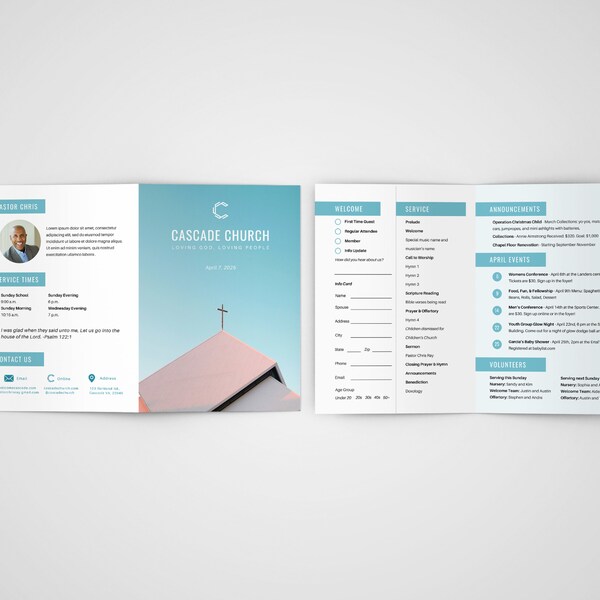 Printable Church Bulletin Template in PSD Illustrator Pages InDesign