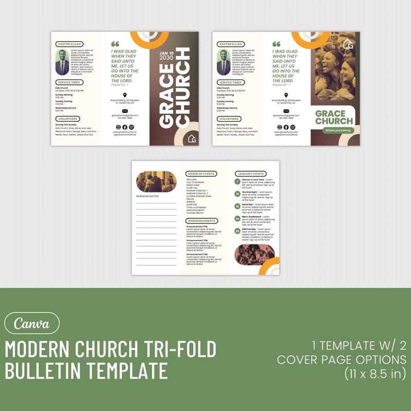 Olive Neutrals Church Bulletin Template Editable Canva Digital