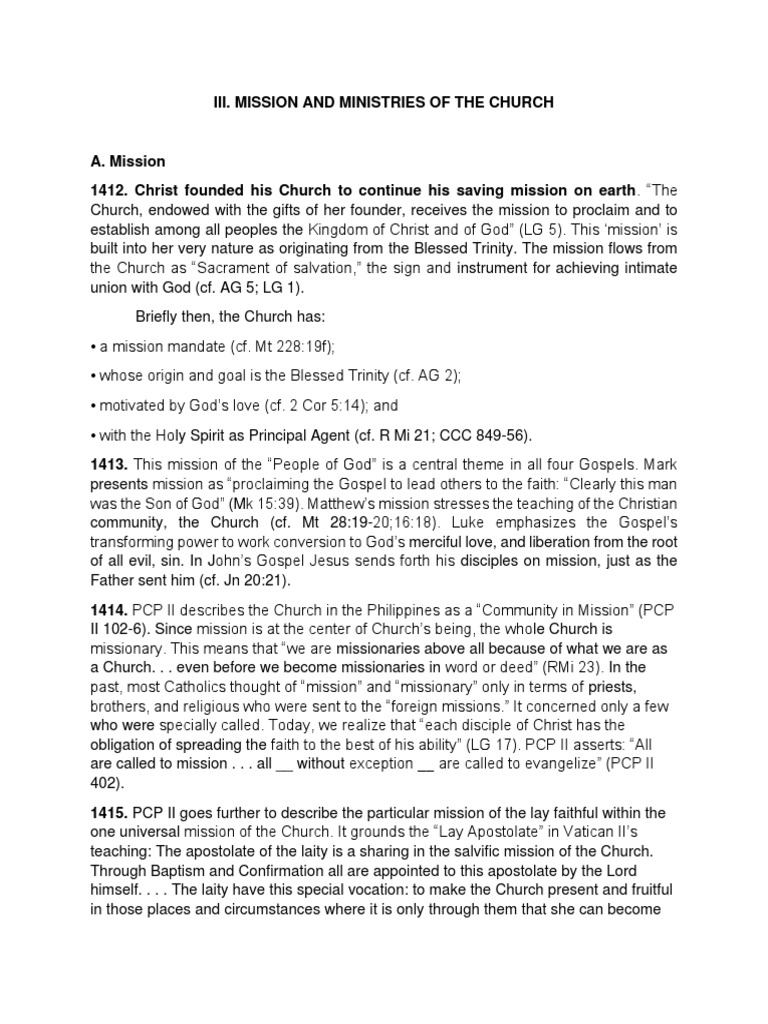 MIssion and Ministries of The Church PDF Catholic Church