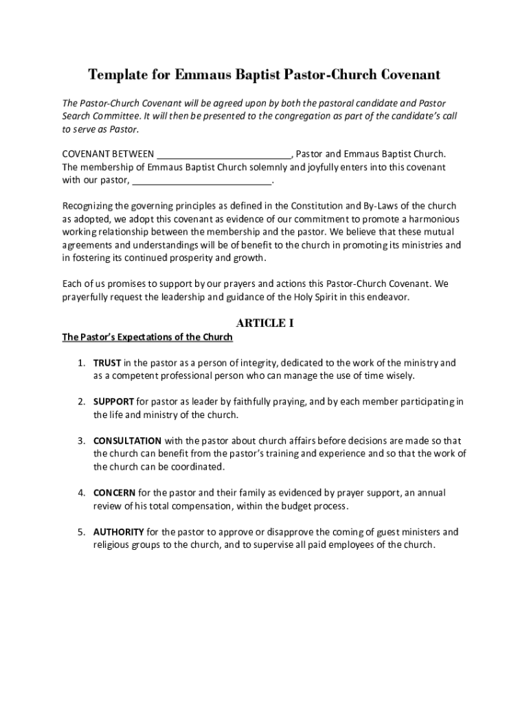 Fillable Online Template for Emmaus Baptist Pastor Church Covenant Fax