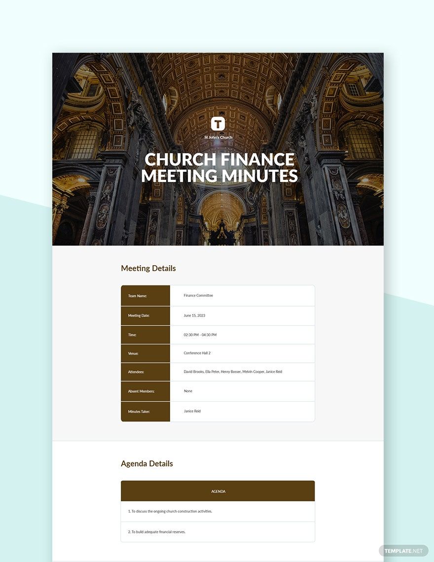 Free Church Business Meeting Minutes Template Edit Online Download