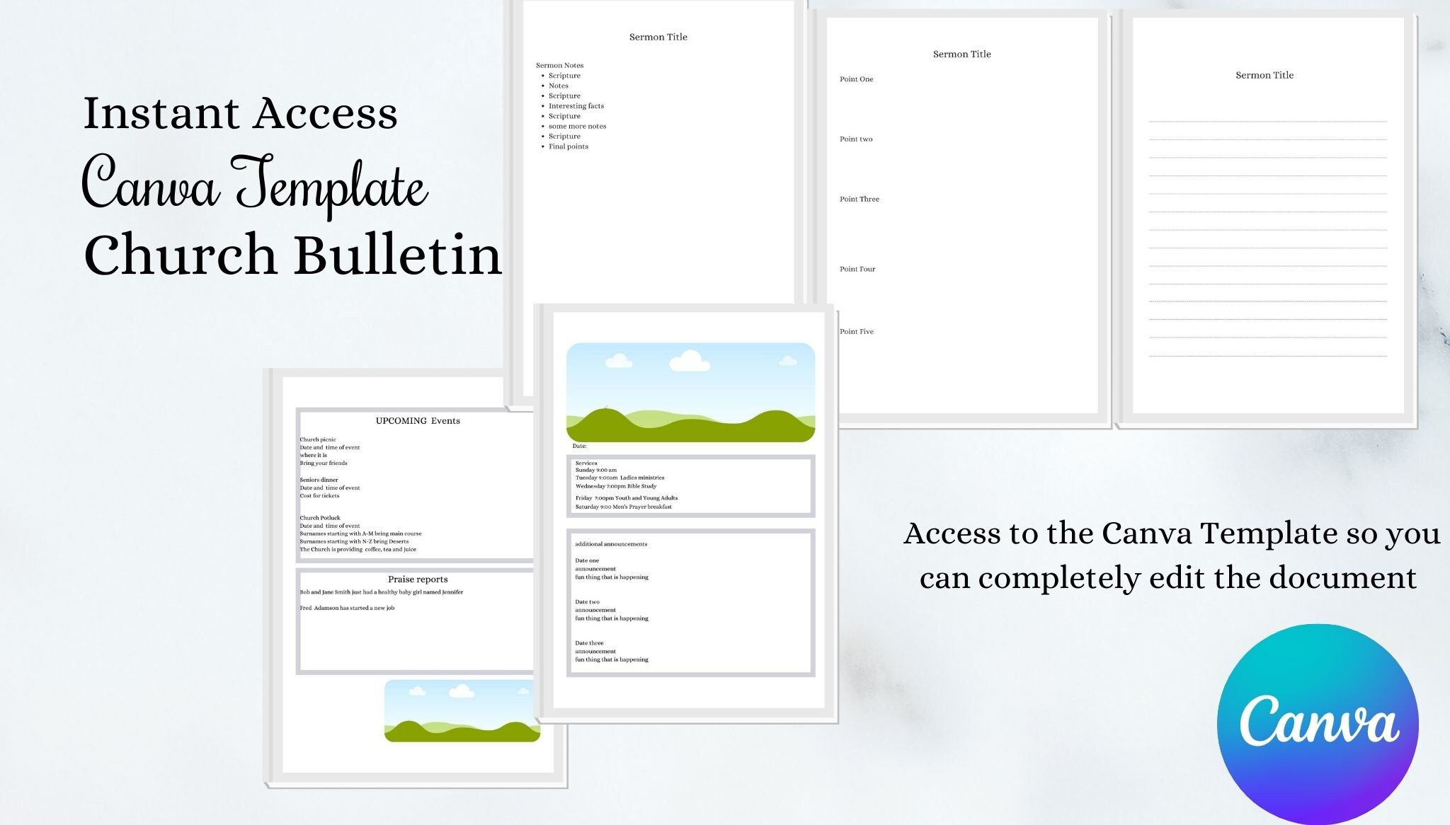 Digital Church Bulletin Template Editable Canva Layout (8 5 X 11 In