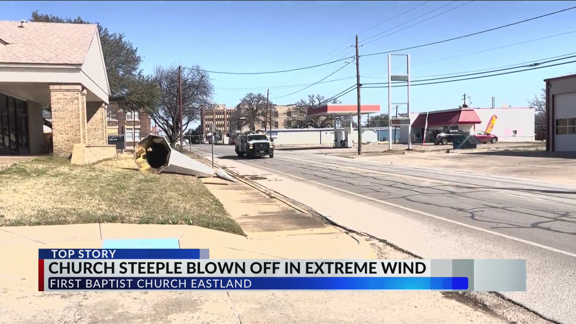 PHOTOS: Eastland First Baptist Church steeple knocked off by high winds