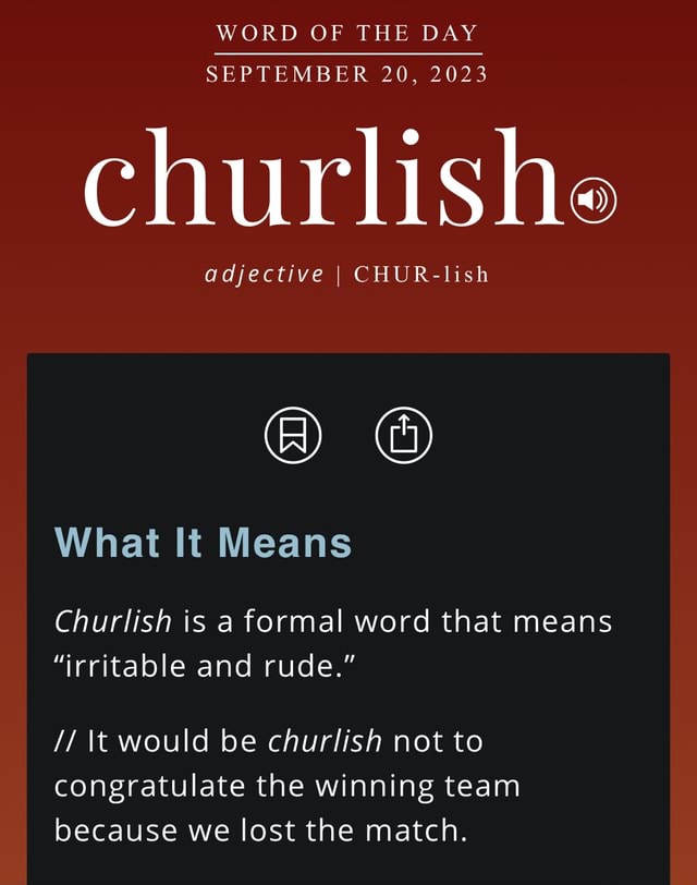 WORD OF THE DAY SEPTEMBER 20 2023 churlishe adjective I CHUR lish What