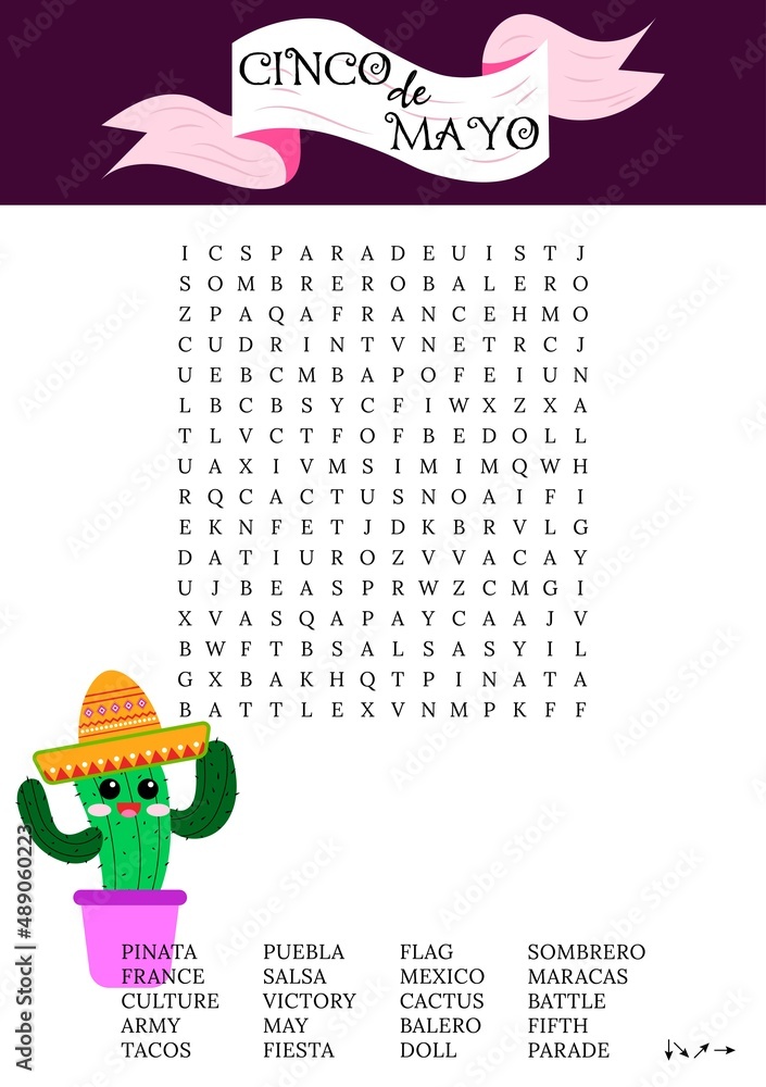 Cinco de Mayo Puzzles Word Search Crossword Maze Coloring Page Activity